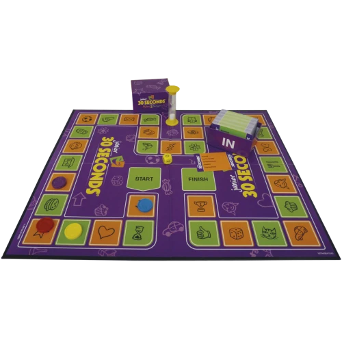 Je speelt in teams. Een van jullie probeert binnen 30 seconden zoveel mogelijk van de 5 begrippen op een kaartje te omschrijven. Hoe meer begrippen jullie raden, des te meer velden jullie op het speelbord vooruit mogen. Een dobbelsteenworp kan daar nog verandering in brengen. Welk team bereikt als eerste de finish?
