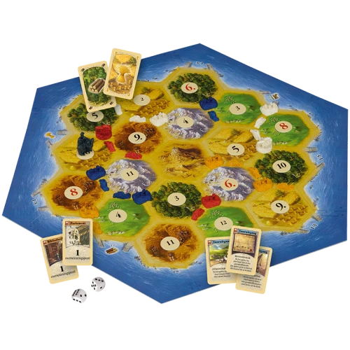 Dorpen en steden leveren niet alleen grondstoffen op, maar zijn ook punten waard. Ook ontwikkelingskaarten, de langste aaneengesloten route en de grootste riddermacht brengen punten binnen. Wie als eerste 10 punten heeft, wint het spel direct!