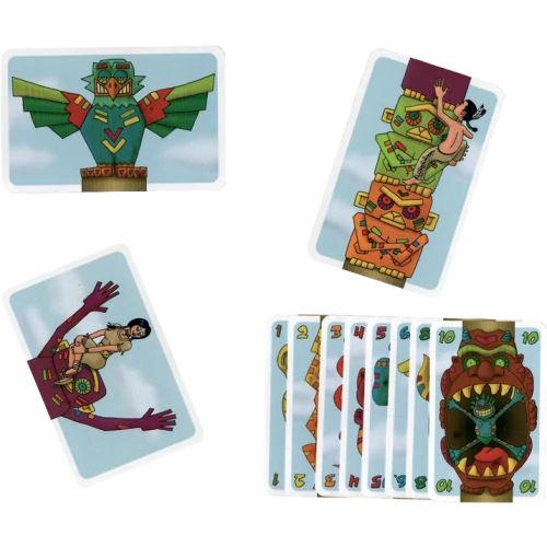 Elk jaar organiseren de Indianen een spannende wedstrijd. Wie bouwt de mooiste en hoogste totempalen? Jij doet ook mee. Je krijgt 21 kaarten en het spel duurt 7 ronden. Elke ronde kies je drie kaarten, waarmee je de beste totempalen probeert binnen te halen. Maar pas op, de andere spelers kunnen die zo voor je neus wegkapen. Probeer dus goed te plannen en risico te spreiden. Als jij aan het einde van het spel de meeste punten hebt, win je het spel.