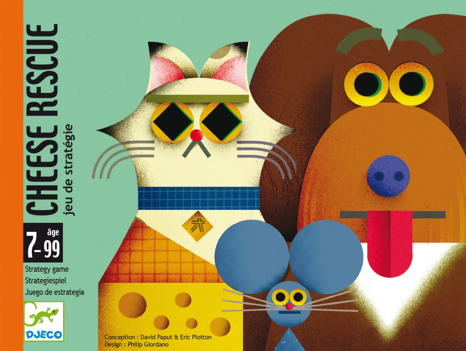 Kinderspellen – Kaartspel Red de Kaas (Cheese rescue) van het merk Djeco is een kaartspel waar je heel goed moet nadenken en zoveel mogelijk kaas punten moet verzamelen. Maar bedenk wel een muis eet kaas, een muis is bang voor een kat en een kat is bang voor een hond. Leg jou speelveld zo neer dat je aan het eind van het spel de meeste kaaspunten hebt.