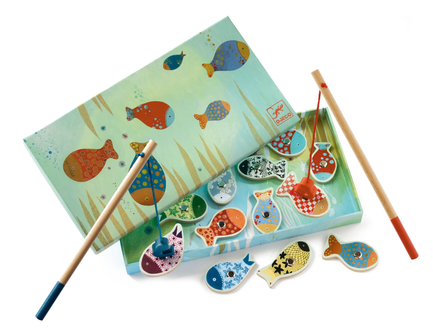 Kinderspellen – Educatieve houten spel, Magnetisch vissen Vissendroom (Fishing dream) van het merk Djeco is een magnetisch visspel met allemaal gekleurde visjes die je met je hengel kan vangen.