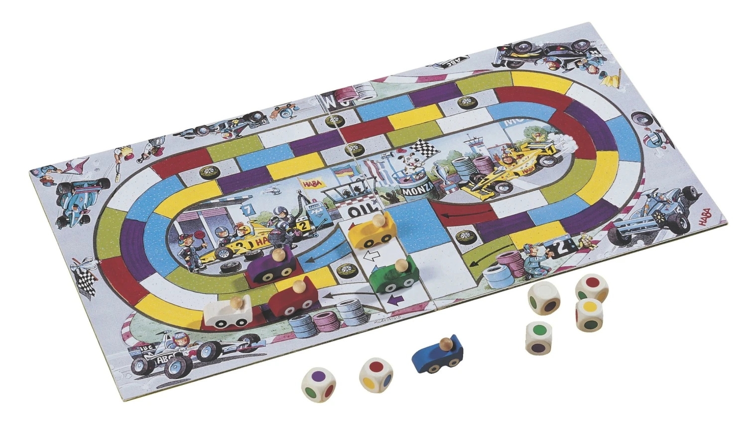 In Monza hebben de spelers een snelle raceauto, een doordachte tactiek en een beetje geluk nodig. De kleurendobbelstenen tonen via welke velden op het racecircuit mag worden gereden. Welke rijbaan wordt gekozen en wanneer wordt een inhaalmanoeuvre uitgevoerd? Wie als eerste de finish bereikt, is de winnaar.