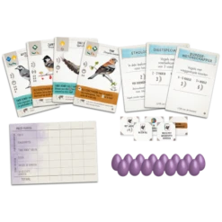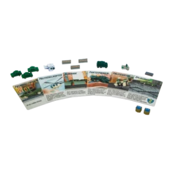 6 slakken, 2 dobbelstenen, 12 wedstrijdkaarten, 1 spelbord, 1 erepodium, 1 onderkant van doos, 6 x magnetische folie, 1 handleiding.