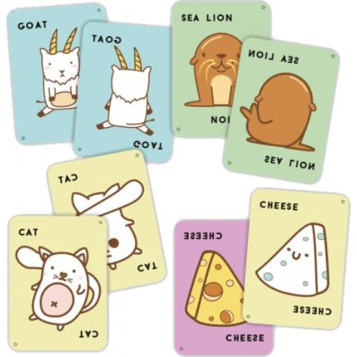 Taco Cat Goat Cheese Pizza! Houd deze gekke reeks woorden in gedachten. Zodra er een overeenkomst is tussen een kaart en een gesproken woord, race je om met de rechterkant van je hand op de middelste stapel kaarten te slaan. Degene die dat als laatste doet moet ze allemaal pakken!