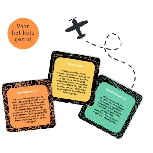 Een compact blikje met kaarten vol leuke spelletjes om te doen in het vliegtuig. De activiteiten in dit blik – van raar tot waar – zorgen voor urenlang speelplezier voor het hele gezin.
